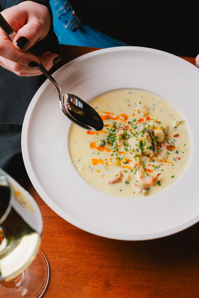 At Sims Corner we believe beautiful food deserves to be enjoyed in a beautiful setting. With our modern, inviting décor and our knowledgeable, friendly staff, we strive to provide the perfect atmosphere for the ultimate dining experience.
